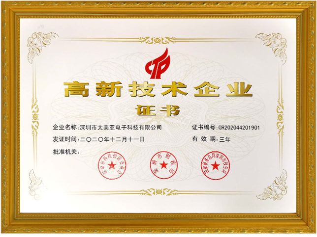 04月太美亚制造基地正式运营,通过ULZPVI2工厂认证 01月连续三年评为“广东省守合同重信用企业”