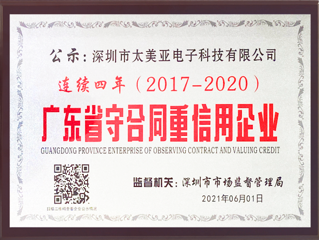 04 M Passed UL ZPVI2 certification, Manufacturing base officially operated 01 M For three consecutive years, awarded as ‘Guangdong Reliable and Credible Firm’