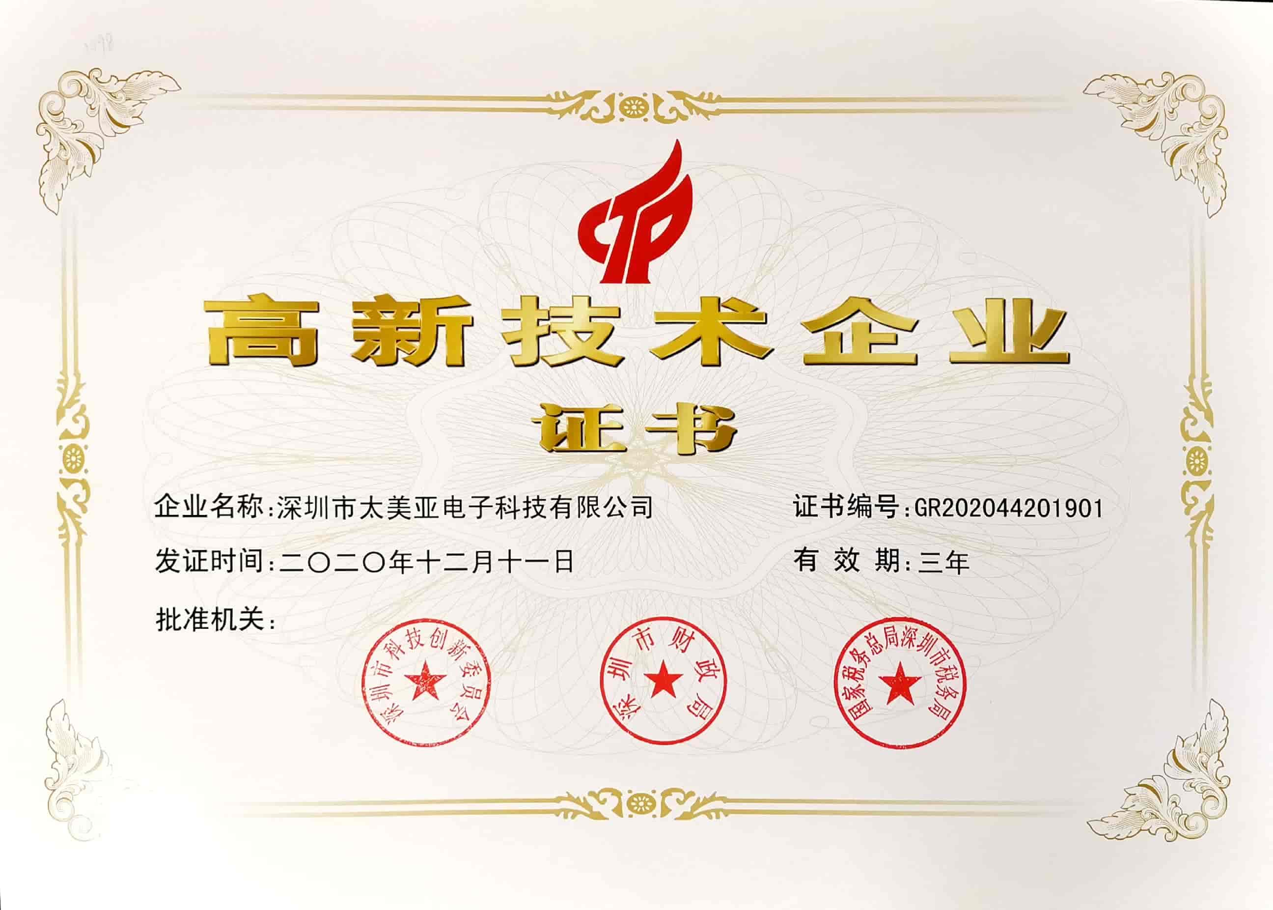 Recently, Timeyaa passed the audit by Shenzhen Science and Technology Innovation Committee, Shenzhen Municipal Finance Bureau, and Shenzhen Municipal Taxation Bureau of the State Administration of Taxation and was recognized as a national high-tech enterprise once again.