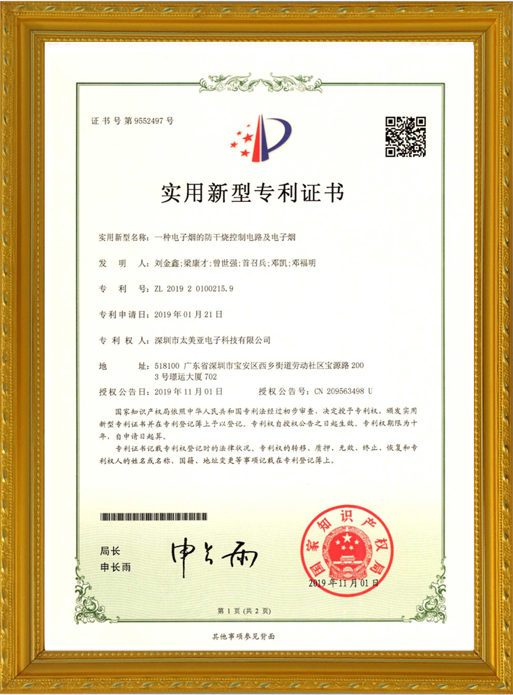 一种电子烟的防干烧控制电路及电子烟专利证书